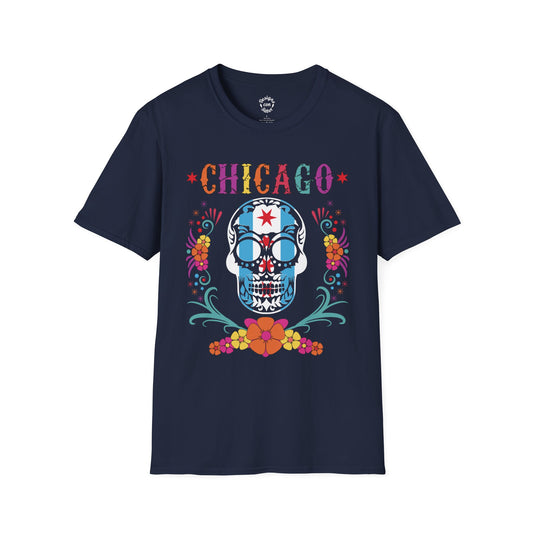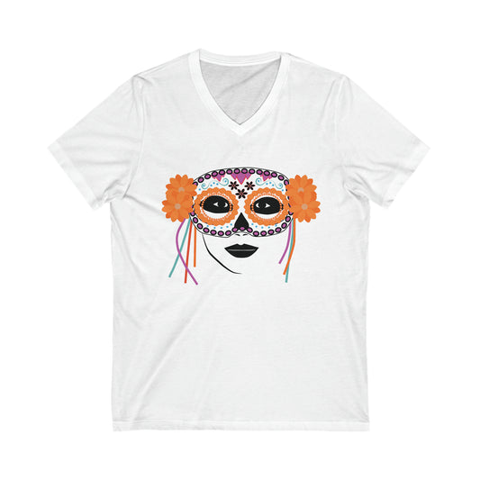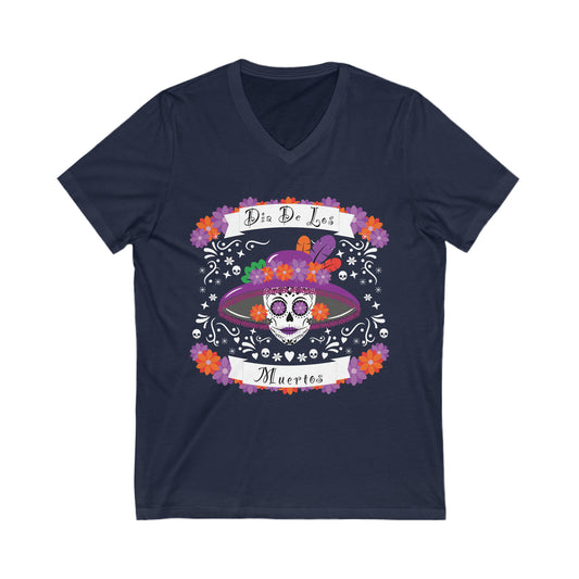 Chicago Catrina With Sombrero Dia De Los Muertos Colors V-Neck