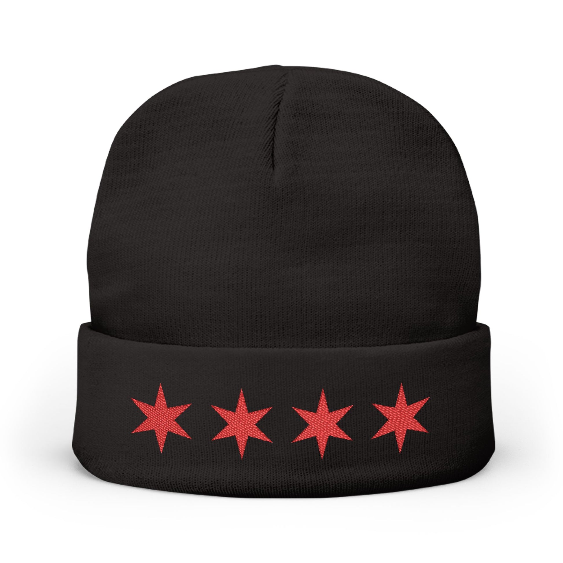 This Chicago Stars Knit Beanie keeps it simple with four embroidered red stars inspired by the Chicago flag across the cuff. No stripes, no pom, just a clean low profile beanie you can throw on with anything.